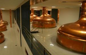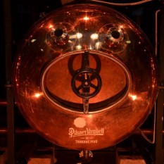 Procházíme typickou vstupní branou do Plzeňského pivovaru. Po vyčerpávajícím dni, kdy jsme odolávali i útokům divokých hus, nás čekala hodinová exkurze v muzeu piva, legendárního giganta světového významu. Z měděných tanků na Spilce je pivo jako křen!
