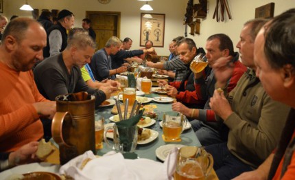 Příjemné posezení v kouzelném prostředí salonku umocňovala přátelská obsluha, která se o nás po celou dobu perfektně starala. Pivo jsme úvodem proložili lahůdkovým gulášem nejvyšší kvality, který všem udělal v bříšku jako v pokojíčku. Možnost strádat, nebyla dána. Lukulské hody završil raut se skvělými pomazánkami, sýry, řízečky a dalšími pochutinami vynikající chuti.
