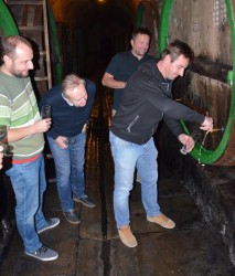 To nejlepší nakonec! Leoš LPPK mě vylákal do sklepa. Zprvu jsem měl obavy, co po mně bude chtít? Posléze se mi ulevilo, když chtěl jenom fotku, jak sám čepuje pivo ze sudů. Po odborném výkladu si čepování vyzkoušela většina z nás a byl to neopakovatelný zážitek.