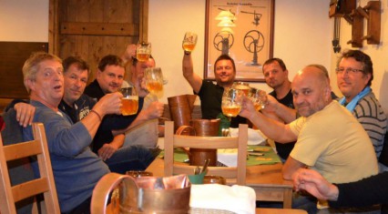 Kurz čepování: Pustit pípu, upustit, přiložit sklenici, točit po stěně a při dotáčení sklenici narovnat, aby pivo mělo pěnu. Můj ty světe, kurz čepování jsme radostně zvládli na 1*. Zábava pokračovala a častý pobyt jednotlivců u pípy, z nás udělal mistry. K naší převeliké lítosti nastal čas, kdy jsme byli nuceni sklepní prostory nadobro opustit.